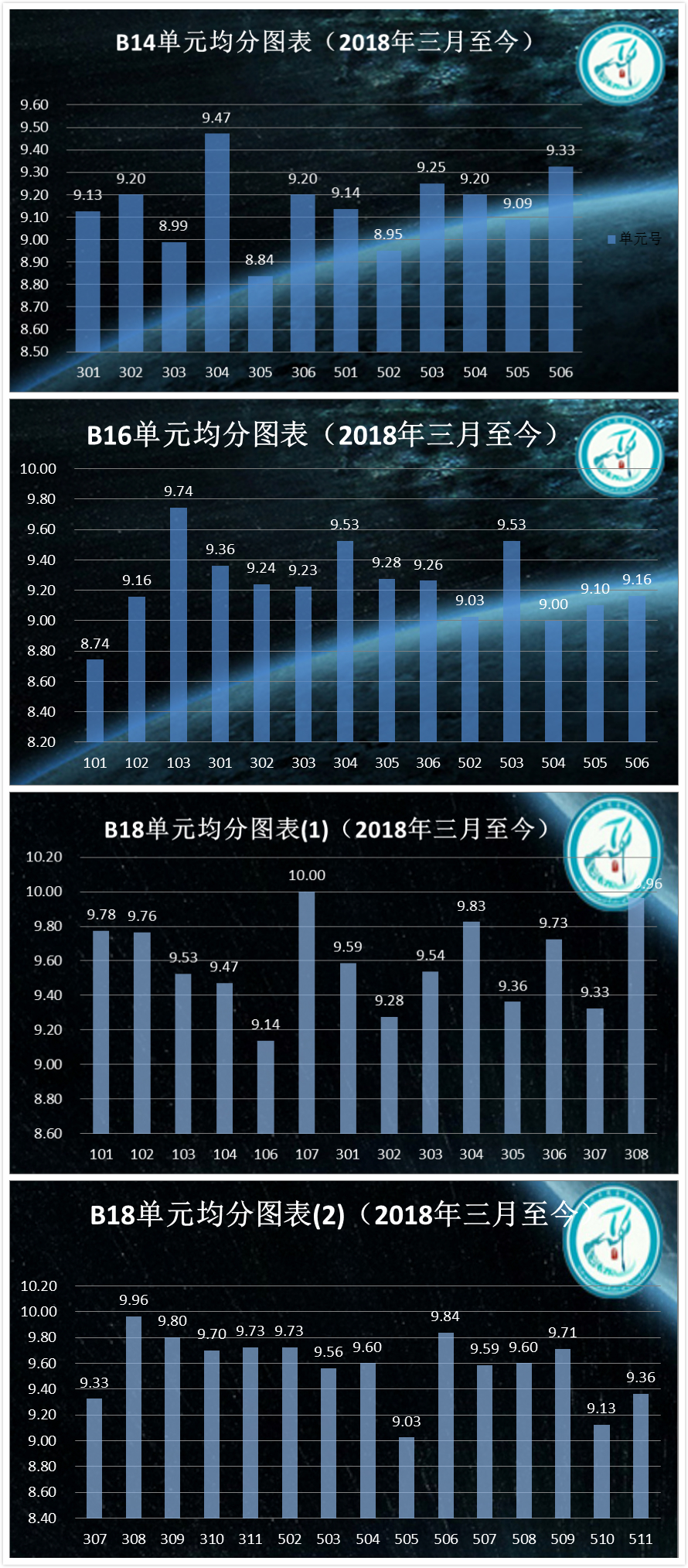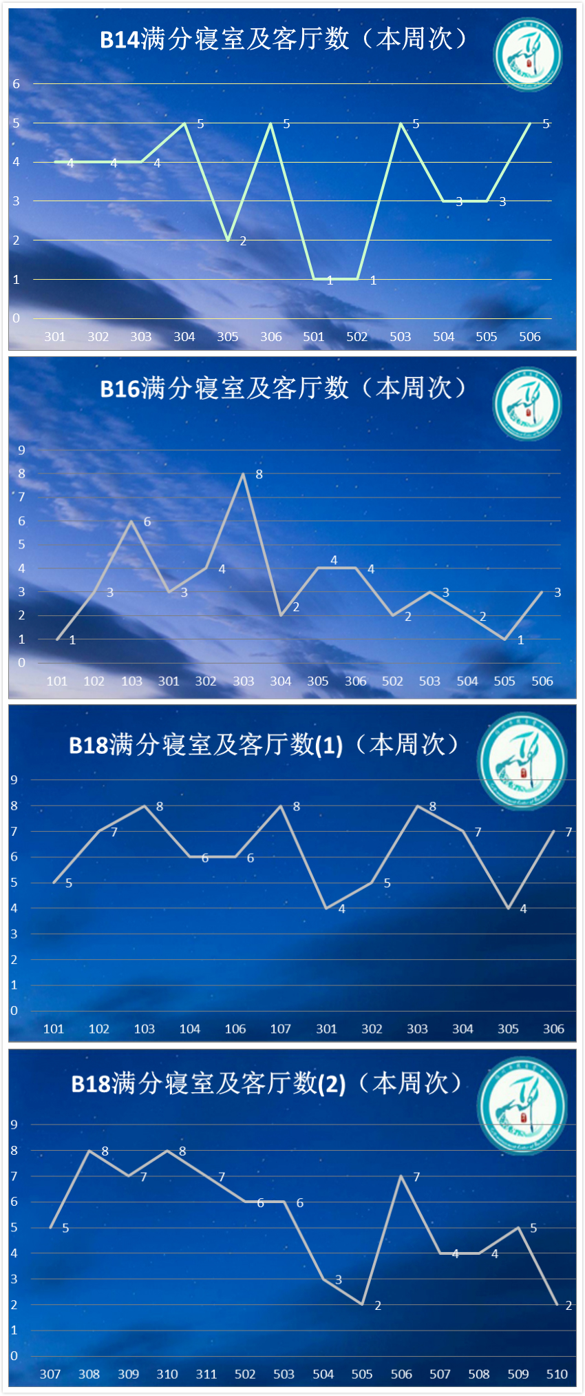 优秀单元:本次B14、B18优秀寝室与满分单元较多。