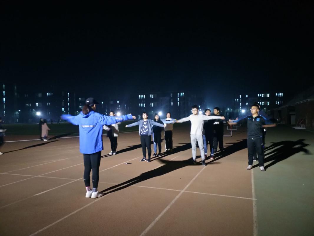 为防止同学们在运动中受伤,热身活动必不可少。在正式跑步活动开始之前,领跑员带领同学们为跑步做好充分的准备活动。热身结束后,由领跑员领跑,同学们在操场上开始正式的夜跑活动。参加活动的同学们听从教练的指导,按照专业的呼吸方式和步伐节奏进行跑步。随着荧光的跃动,同学们的热情愈发高涨,奔跑着的队伍体现了同学们的健康活力,彰显了大工人奋发进取的精神,诠释了新时代青年的决心。